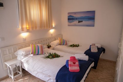 Alle geräumigen Apartments im spanischen Stil sind mit weiß getünchten Wänden und bunten Kissen ausgestattet. Jedes Apartment verfügt über ein eigenes Bad, eine Sitzecke (TV und DVD-Player) und eine Küche mit kostenlosem, gefiltertem Wasser und Teezubehör. Heizung, Klimaanlage und Ventilatoren sind ebenfalls vorhanden.