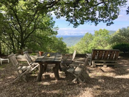 Auf dem 7,5 ha großen Grundstück befinden sich die alte, typisch provenzalische Bastide, ein romantisches Holzchalet und ein Heilhaus im Öko-Stil namens Anamaya.