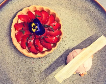 Morgens erwartet Sie ein 100% pflanzliches Frühstück. Abends bieten wir auch ein kulinarisches 3-Gänge-Menü an, 100% pflanzlich.