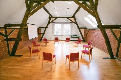 Der Seminarhof bietet Platz für Gruppen von 10 bis 45 Leuten und verfügt über drei Tagungsräume von 70 bis 130qm.