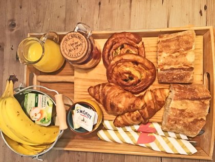 Frisches Brot und Gebäck werden von der örtlichen Boulangerie bezogen.