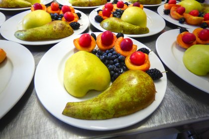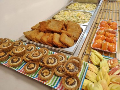 Zum Mittagessen erwartet Sie nach guter tschechischer Tradition eine Suppe. Weiterhin können Sie sich auf einen Rohkostsalat und verschiedene Landesgerichte freuen – die Vielfalt von Mahlzeiten reicht von veganer Pizza über Buchweizen-, Reis- und Kartoffelgerichte, typisch tschechische Vollkornknödel und ukrainische „Tauben“ bis hin zum slowakischen Nationalgericht „Halušky“. Zum Abend servieren wir unseren Gästen ein leichtes Abendessen in Form eines liebevoll angerichteten Obsttellers.
