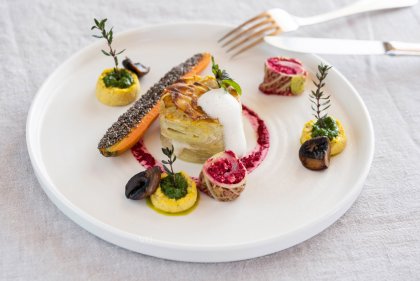 Geniessen Sie ein köstliches 5-Gang-Abendessen, das von unseren talentierten Köchen liebevoll zubereitet wird. Anschliessend erwartet Sie eine erholsame Übernachtung im gemütlichen Doppelzimmer Deluxe.