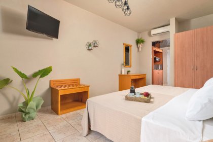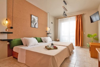 Unsere vegane Philosophie ist jedoch nicht nur auf unser veganes Restaurant beschränkt. Im Urlaub geht es vor allem darum, sich zu entspannen, neue Erinnerungen zu schaffen und innere Ausgeglichenheit zu finden. Die Gäste können sich entweder eine Yogastunde auf unserer grünen Veranda gönnen oder, für die Liebhaber von Extremsportarten, den Strand von Ixia besuchen, wo sie Wind- oder Kitesurfen unter dem atemberaubenden griechischen Sonnenuntergang genießen können.