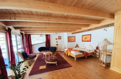Im Hotel Balance gleicht kein Raum dem anderen. Jedes Zimmer ist individuell mit alten Bauern- und Naturholzmöbeln eingerichtet. Die Treppe und Holzböden des über 100 Jahre alten Hauses knarzen heimelig, manche Wände und Decken – aus Holz wie in einem Schweizer Chalet – sind etwas schief.