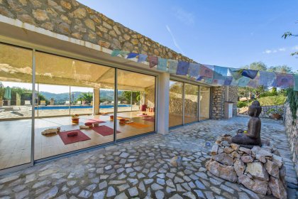 Die Finca Son Mola Vell liegt inmitten der mallorquinischen Landschaft, umgeben von Kiefernwäldern, Zwergpalmen, Rosmarin, Oleander und wildem Fenchel und ist somit ein wunderbarer Ort für Regeneration und Entspannung. Das Grundstück des über 300 Jahre alten Gebäudes bietet Ihnen nicht nur viele wundervolle Plätze zum Verweilen und Reflektieren – man genießt auch einen fantastischen Ausblick auf das Tal von Son Macià, bis zum nahegelegenen Meer. In unserer NEUE WEGE Yoga Finca können Sie den Alltagsstress hinter sich lassen und vollständig zur Ruhe kommen.