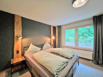 Doppelbett, Bad, TV, Teekocher, Gartenblick