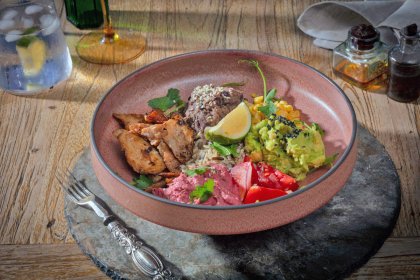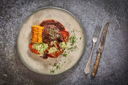 Das Küchenteam verwendet die besten Zutaten von lokalen Lieferanten und kreiert atemberaubende pflanzliche Gerichte, die kompromisslos köstlich, gesund und genussvoll sowie tierleid-frei, nachhaltig und saisonal sind, darunter Gerichte wie “Sticky Seitan Ribs”, “Mushroom Stroganoff Suet Pudding” und “Battered Banana Flower with Salt and Pepper Chips”. Zu den weiteren Gerichten gehören Zitronen-Thymian-Ballotine von gekräutertem Seitan mit knuspriger Polenta, geröstetem Paprikapüree und Karotten-Speck-Crisp, und als Dessert Granatapfel-Rosen-Mousse mit Vanille-Baiser, Rosen- und Kardamom-Creme, Früchten der Saison und Sesamkrokant.