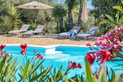 Die großzügige Pool-Oase mit bequemen Liegen und Sonnenschirmen lädt zum Relaxen und Erfrischen ein. Genieße die Ruhe mit einem Glas frisch gepresstem Orangensaft.