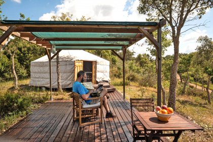 Portugal Nature Lodge bietet Öko-Glamping im Südwesten Portugals in der Provinz Alentejo. Sie verfügt über 4 luxuriöse Zelte auf einem 7,5 Hektar großen Grundstück im Naturpark ‘Parque Natural Sudoeste Alentejana e Costa Vicentina’. Jedes Zelt liegt in den niedrigen Hügeln um ein Tal herum und bietet viel Privatsphäre und einen fantastischen Blick auf den Naturpark.