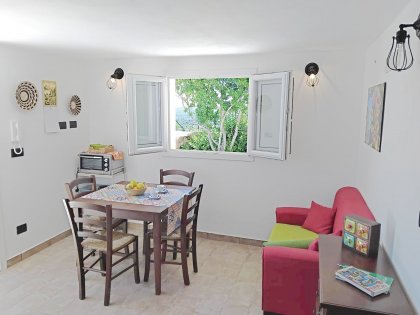 Gemeinsam mit dem anderen Zimmer gibt es ein kleines Wohnzimmer mit Sofa, Tisch und Stühlen, eine Küchenzeile mit Kochplatten, Elektroherd und Kühlschrank, wo Sie Ihre Mahlzeiten selbst zubereiten können.