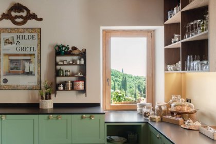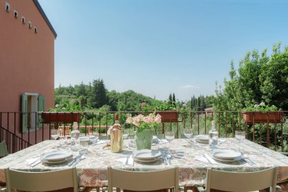 Unser JAR ist ein kleines, charmantes Relais, das das ganze Jahr über geöffnet ist. Es ist in die sanften Hügel oberhalb des Gardasees eingebettet und liegt in Pizzon, einem winzigen Dorf mit nur 64 Einwohnern – ein typisch italienisches Örtchen, in dem die Zeit stehen geblieben zu sein scheint. Am Abend, wenn die Sommerhitze nachlässt, sieht man noch Großmütter gemütlich die kleine Dorfstraße entlang spazieren.