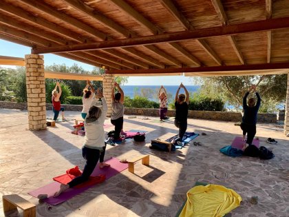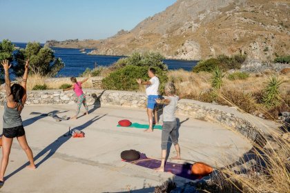 Das Frühstück wird bei Morgensonne auf der Hotelterrasse eingenommen und 5x in der Woche gibt es ein ausgezeichnetes vegetarisches (auf Wunsch veganes) mediterranes Abendessen (1x Begrüßungsessen am Anreisetag, 3x Abendessen im Hotel, 1x Abendessen in griechischer Taverne).