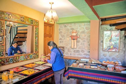 Die meisten Zutaten der vegetarischen Gourmet-Mahlzeiten sind biologisch auf dem Gelände von Willka T’ika gewachsen. Täglich werden frische Kräuter gepflückt, welche die Gäste jederzeit zu eigenen Heilkombinationen mischen können. Außerdem kann die Küche von Willka T’ika viele unterschiedliche Diätwünsche erfüllen.