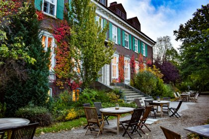 Der Park mit einem stillen Teich lässt die Atmosphäre des Hauses spüren: Man fühlt sich geborgen und hat gleichzeitig genügend Platz.