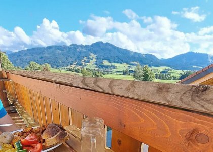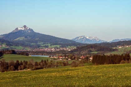 Die bekannten Gipfel in unmittelbarer Nähe sind die Alpspitze bei Nesselwang und der Grünten. Ein traumhafter Blick auf die Alpen bietet sich direkt vom Haus aus und bei guter Sicht sogar auf die Zugspitze. Ein Genuss für jeden der Yoga in einer kraftvollen Naturumgebung praktizieren oder lernen möchte.