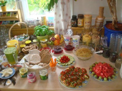 Wir verwenden belebtes Wasser (nach Johann Grander), Himalaya- Salz, kaltgepresste hochwertige Öle und frische Garten- und Wildkräuter. Das Getreide für Brot und Brötchen wird vor der Verarbeitung frisch gemahlen und die warmen Frühstücksbreis in Keramiktöpfen gekocht. Zum „Brotzeiten“ oder für „Selbstversorger“ stehen ein Wasserkocher, Gläser, Tassen, Teller, Besteck sowie ein Kühlschrank bereit.