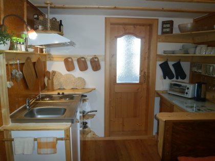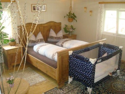 Eine urige und originelle Ferienwohnung bietet Raum zum Wohlfühlen und Selbstversorgen und kann für Gruppen und Großfamilien auch kombiniert werden mit den anderen Gästezimmern und der Stube.