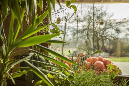Im veganen Restaurant werden großenteils Produkte des eigenen Bauernhofs verarbeitet.
