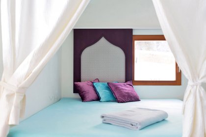 Jede Casita mit eigener privater Terrasse samt Hängematte, Outdoorbett & Grill. Bei 5, 6 & 7 mit eigener Fasssauna. Drinnen große Kuschelecke auf erhöhtem Podest, großes Panoramafenster, kleine Wein- & Getränkeauswahl, Kleinigkeiten zum Knabbern und Nudeln mit Pesto für spontane Gelüste. Die Küche ist voll ausgestattet mit Gasherd, Kaffeemaschine, Kaffee, Tee. Geschlafen wird in superbequemen Boxspringbetten, Bettwäsche allergiefrei. W-Lan ( wird nachts ausgeschaltet ), SAT-TV, Bücherauswahl. Regendusche, handgemachte Seiferl …